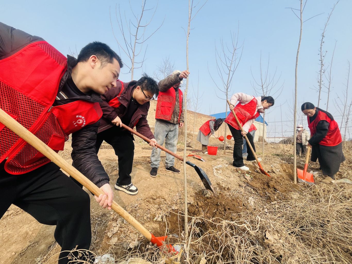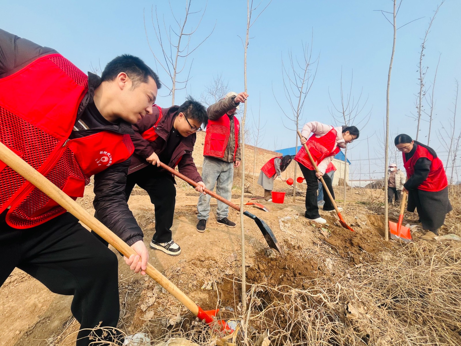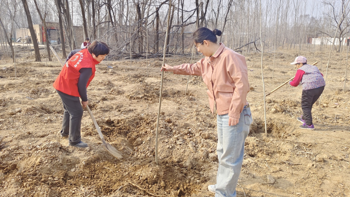 在植树节来临之际,张大庄镇组织新时代文明实践志愿者开展义务植树文明实践活动,以实际行动为乡村增绿添彩。活动现场,大家分工协作、默契配合,挥锹挖坑、扶苗填土、提水浇灌,严格按照栽植规范精心栽种每一株树苗,一派热火朝天的劳动景象。志愿者们一边植树,一边向周边群众宣传生态环保、林木养护知识,引导大家树立爱绿、植绿、护绿的文明意识,主动参与到人居环境整治和生态文明建设中来。此次义务植树活动,既是一次生动的文明实践,也是一堂鲜活的生态教育课,进一步增强了干部群众的绿色发展理念和生态文明意识,为打造生态优美、宜居宜业的美丽张大庄夯实了绿色根基。