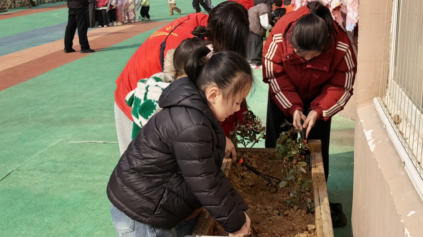 3月12日,宁城街道希望社区志愿者来到宁津县实验幼儿园,开展“春染希望 萌娃植绿”植树节活动,小手拉大手,为春日社区添新绿、筑美好。志愿者为孩子们讲述小树如何生根、长大,对净化空气、美化家园的作用。实践环节,孩子们在老师和志愿者的引导下,小心整理、慢慢填土,对着绿植轻声叮嘱,许下与绿植共同成长的美好心愿。